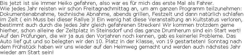 Nunmehr zum vierten Mal nehmen wir an der Rallye rund um Weida teil!