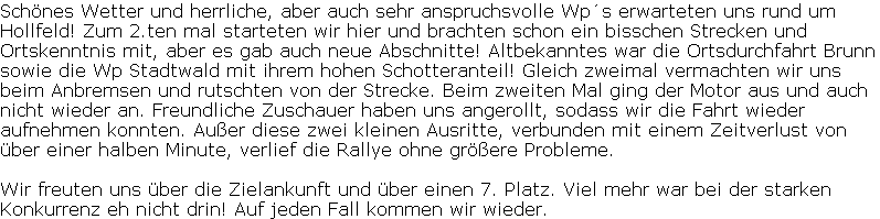 Natürlich hatten wir hohe Erwartungen, da es ja unsere Heimrallye ist und wir voriges Jahr den