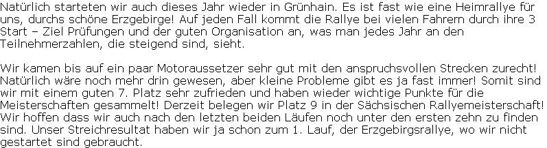 Zweite Heimrallye für uns, im schönen Erzgebirge.