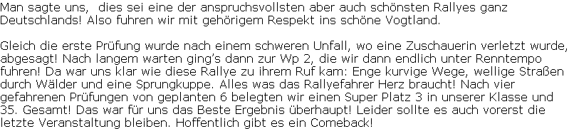Mit 2 komplett neuen Wp´s wartete dieses Jahr die Rallye rund um Freiberg auf!